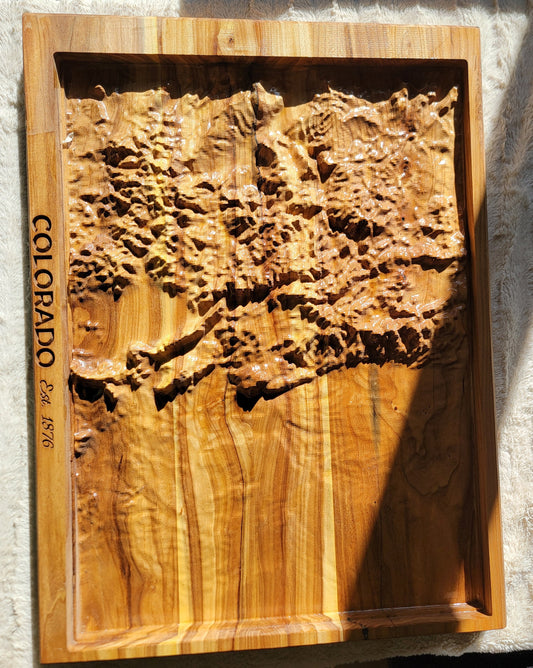 Colorado Relief: Carved Elm Topographical Map